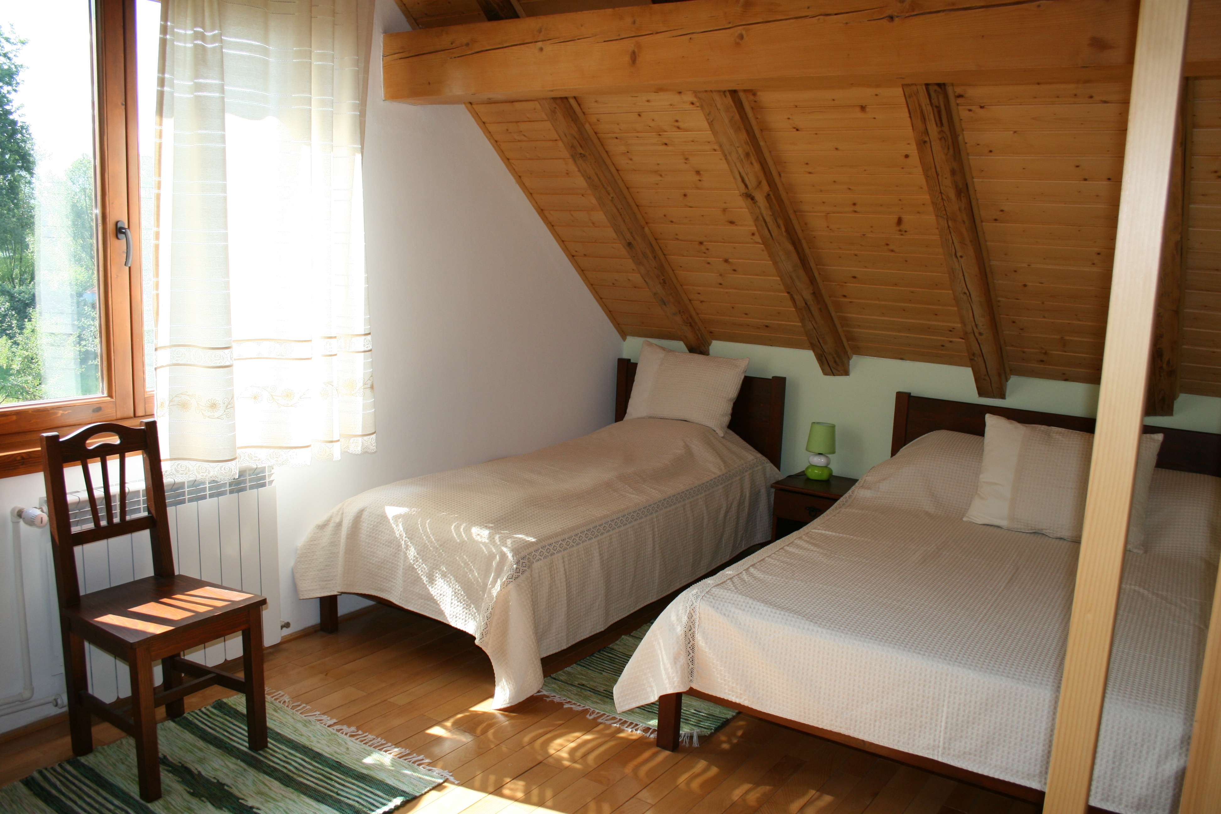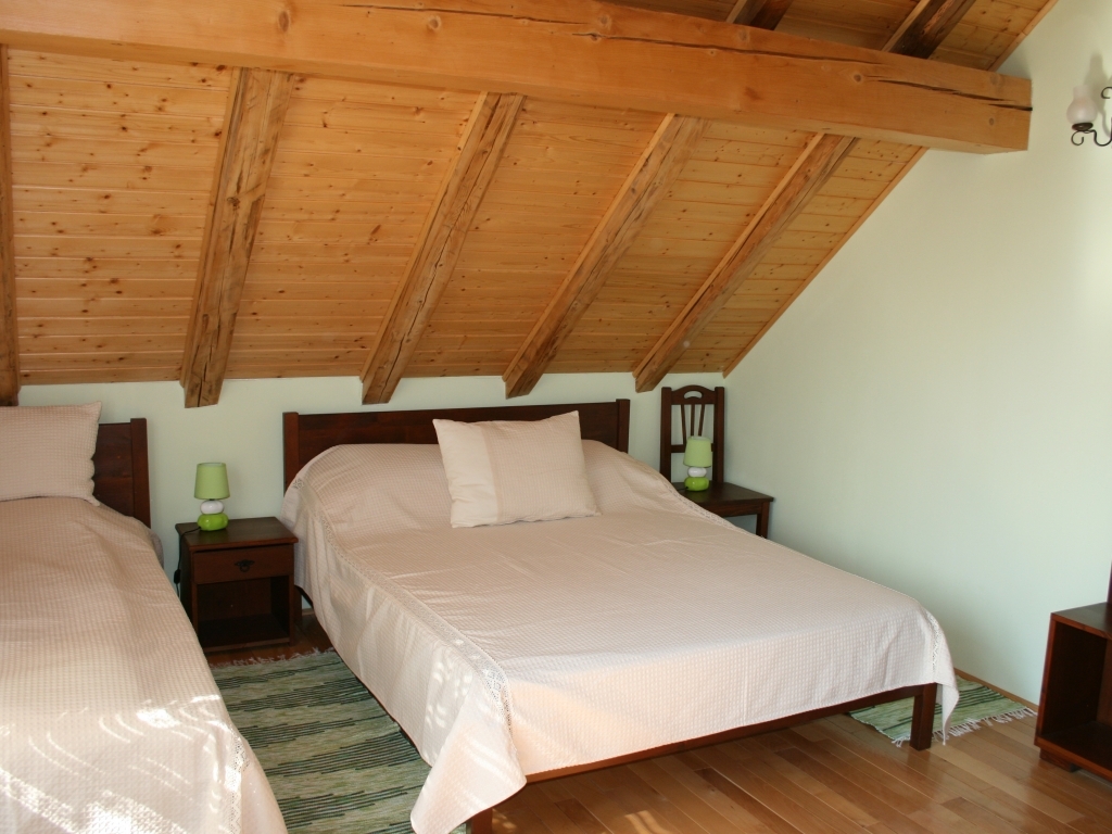 La etaj, 2 dormitoare mari de 3 locuri fiecare, cu câte 1 pat dublu si 1 pat simplu, cu lenjerie din bumbac de calitate, vor fi cheia pt o relaxare totală. La parter 1 dormitor cu 2 locuri cu 1 pat dublu. Fiecare camera este dotata cu baie proprie in care veti avea prosoape, uscator de par, sapun si sampon.