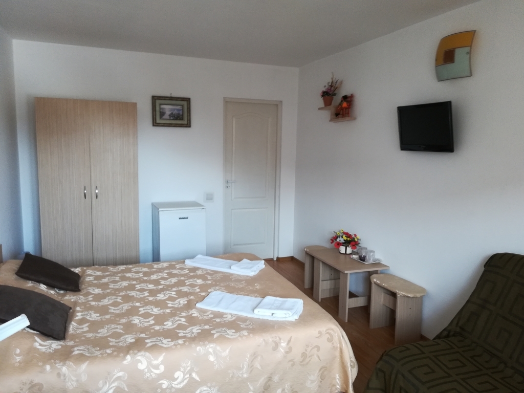 Pat matrimonial,frigider, tv LCD, aer conditionat,uscator de par,internet wireless, balcon, canapea extensibila